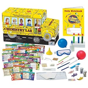Ms. Frizzle and her students take Young Scientists on a wild ride with the Magic School Bus as they explore the field of chemistry. Young Scientists make sticky ice, use litmus paper, measure pH, perform chromatography, make bubble sculptures, wake-up fungus, create slime, form a bouncy ball, learn about density, produce a milk rainbow, plate copper, explode a volcano and much, much more. This exhilarating bus-shaped kit comes packed with science components, 51 colorful experiment cards and a data notebook to record observations. Seatbelts, everyone. Get ready to experiment with Chemistry Lab. The magic school bus science kit. Ms. Frizzle and her students take child on a science field trip. 51 illustrated colorful experiment cards. Bus shaped kit is a chemistry lab. store experiments and components in the bus shaped kit - comes with three plastic trays to hold all components.