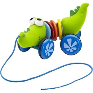 Fun and Flexible, the Wonderworld Pull-Along Croco Kid is a great companion for your child to pull along while they play. The Wonderworld Pull-Along Croco Kid is flexible and rattles when it is pulled along by its string. The Wonderworld Pull-Along Croco Kid is constructed of soft colorful, plush fabric and 4 colorful painted wood ring in the center of its body. The wooden wheels are detachable so child can play with the soft plush crocodile and/or the rattling rings on its own. It is designed to be used by children who are one year of age or older. The Wonderworld Pull-Along Croco Kid will be a constant tag-along as your baby explores their curious world and discovers new modes of play.